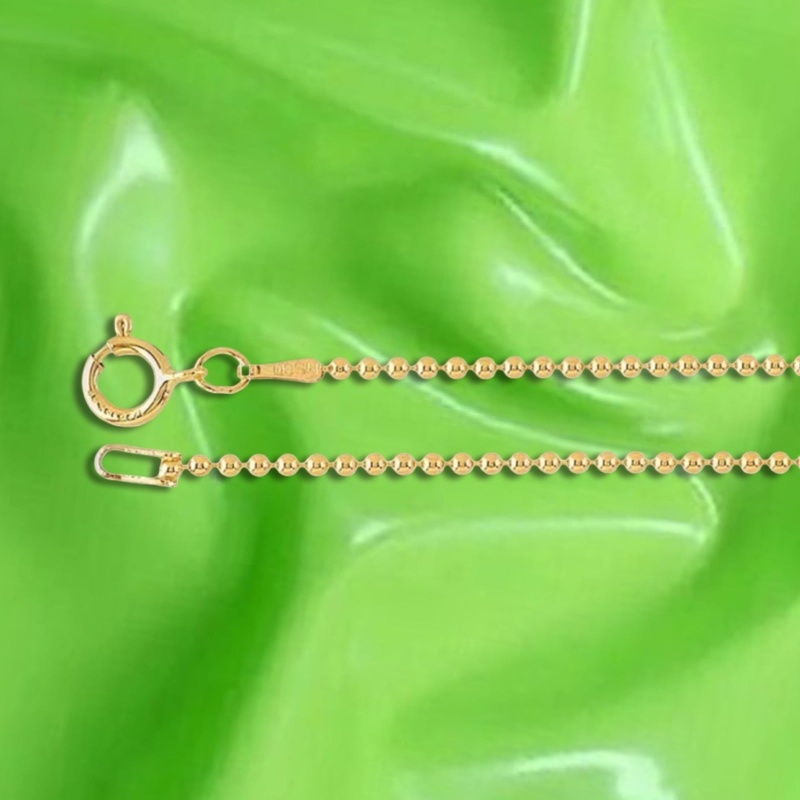 the teeny balls on this 14k gold-filled chain are just enough detail to make this simple chain the perfect choice for your charm! measuring in at 18", it's dainty, lightweight, and versatile as heck!