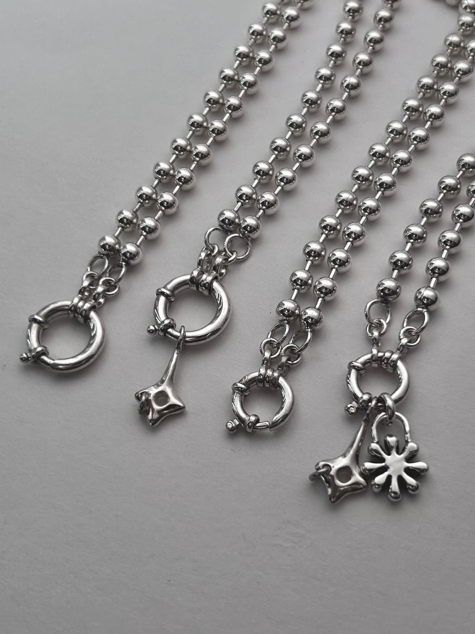 Live out your 90s dreams in the Spaceboy Charm Chain! 18" of bold sterling silver ball chain with your choice of front-clasp. Charm chains are bold and stand out alone or you can add a charm or 7 to really kick up the heat😜 Grab some charms here!
